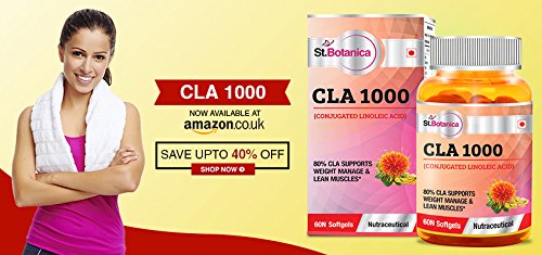 -. Feature : Together with a balanced diet and regular exercise, St.Botanica CLA 1000 is a great, non-stimulating addition to your overall weight-loss plan / A certified source of 80% standardized CLA .Each St.Botanica 1000 CLA 1000 mg softgel contains 80% CLA from 100% non-GMO safflower oil / The leading brand of CLA. Industry-best products developed by our on-staff physician and backed by our knowledgeable customer support professionals have made St.Botanica CLA 1000 a best-selling weight management supplement / St.Botanica CLA 1000 is manufactured in the GMP certified facility, assuring you that your purchase meets strict standards for ingredient quality and safety. All natural, non-stimulating, and gluten-free. / Responsive customer support. Our unsurpassed service professionals are available to answer any questions you may have.