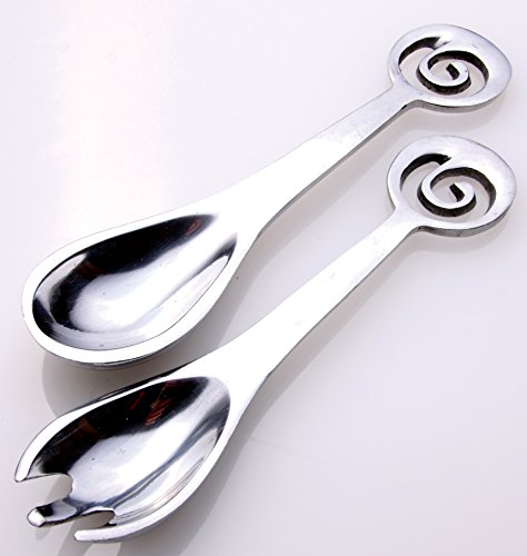 Studio : Original Rug Company Publisher : Original Rug Company Product Description This pair of Swirl @ aluminum servers are guaranteed to make your entertaining an elegant and fun event. Hand crafted with matching Swirl @ on the handles and polished serving sides. Polished to a high shine, the set includes one spoon and one fork each measuring 9x2x1". These servers offer long-lasting beauty without the 'handle with care' cautions and constant polishing demanded by silver products. Measures 9x2x1" 0
