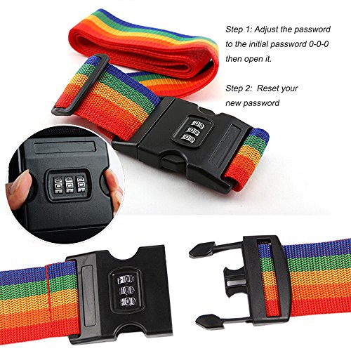 Product Description Keep luggage secure and safe when travelling with these Luggage Straps. Adjustable Suitcase Straps: Fits most standard size luggage box or bags. Premium price, you can feel free to buy them Colorful Design: Makes it quick and easy to find at the collection point. Don't waste any more time at baggage claim than you need to. Luggage essentials, offers great security to your travel luggage, also make the security inspection more conveniently. High Quality: Super strong nylon material, highly friction resistant, never fade colour. They are fine texture, lint free, very comfortable hand feeling. How to set password: 1. To open your personal combination, please obey the following steps. 2. The lock is preset at factory to open at 0-0-0. check the 0-0-0 aim at indication line. Press down the snap. Now the lock is ready to open. 3. Press down the button inner of the lock. 4. Set the password as you want and remember it. 5. Release the button, now your private combination is set. 0