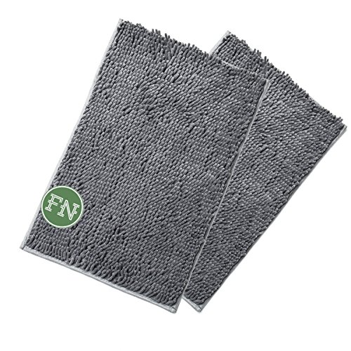 FindNew Absorbent Microfiber Soft Shaggy Bathroom Mats Shower Rugs Set of 2 (16" X 24", Grey)
