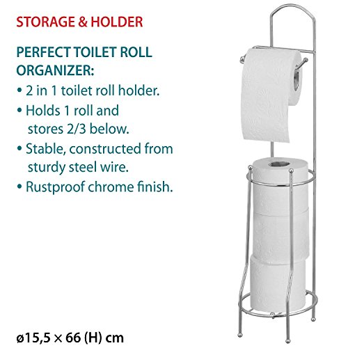 Tatkraft Grace Toilet Roll Holder Stand and Storage Organizer