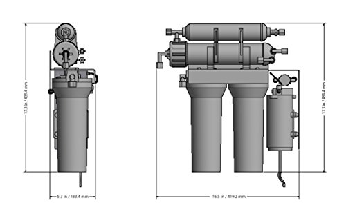Part Number:0950045 Item Weight:31 pounds Product Dimensions:11 x 11 x 13.6 inches Item model number:0950045 Color:White Item Package Quantity:1 Certification:Not Applicable Included Components:Reverse Osmosis Filtration System ZeroWaste® Pump w/Solenoid Assembled 3-Gallon Storage Tank Module with one Full Set of Filters including 50 GPD Membrane Pre-Installed Standard Chrome, Non-Air-Gap Faucet Adapt-A-ValveTM Manual Batteries Included?:No Batteries Required?:No Warranty Description:Limited Warranty Shipping Weight:31.3 pounds (View shipping rates and policies)