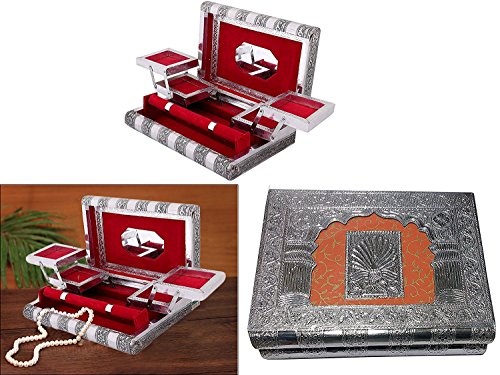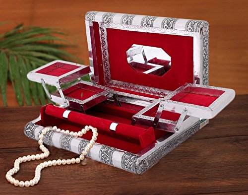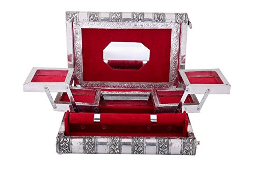 - The box has an in-built mirror, 1 removable bangle stand and 4 sliding small compartments in stair case style to keep and showcase your favorite trinkets, rings and other small accessories.