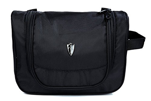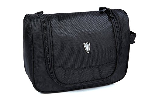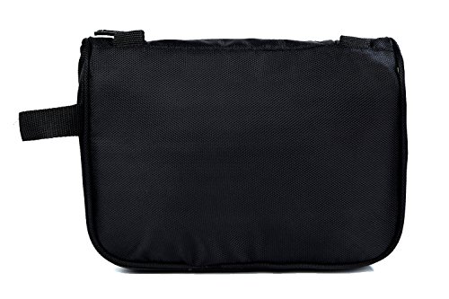 -. Feature : Made of durable 600D nylon for long lasting.Rip-stop and water-resistant. / U-openning, a hand-held hook with easy-carrying handle. The main compartment is covered by a zippered flap. When it opens up, there is a strong hanger hook that you can hang the bag up by hook and on the inside of the flap are two pockets - one small zippered mesh bag and one open pocket that will hold several smaller items. / Spacious main compartment that stands below the open flap, with an easy-to-clean lining, a universal hanger, and pockets and elastic loops for organizing travel-sized toiletries, shaving supplies, cosmetics, and other grooming essentials. The front of main compartment features a mesh wall so that you can see its items clearly even at a height. Even if the zippers are fully open, the contents won't fall out, as they are gusseted. / The bag also comes with a side handle, and it slides easily in and out of your carry-on case or lage. When traveling, whether at an airport restroom or hotel bathroom, you can have toiletries at your fingertips. / This travel bag is perfect for anyone on the go. Dimensions: 29x11x23(cm) / 11x3.9x7.8 (inches)