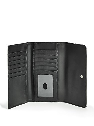 Feature : guess_factory_women_handbags_wallets_wristlets / guess factory women handbags wallets wristlets one / black multi saffiano textured tri fold triangle / logo plaque flap closure exterior zipper pocket / interior features 12 card slots bill pockets id