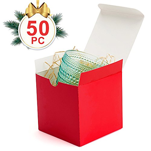 - Red GIFT BOXES - Our high-quality recyclable cardboard gift boxes have a charming rustic look and a natural red finish. At 4x4x4 inches, they are the perfect size and shape for small gifts and homemade cupcakes, for using as wedding favor boxes, or for storing mini ornaments! Boxes only - no other accessories included.