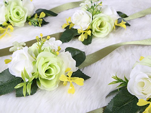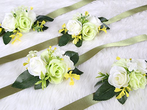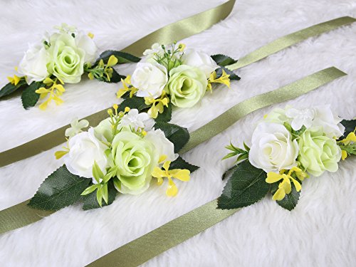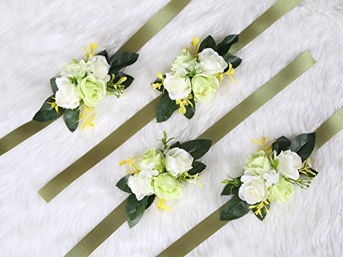Classic bridesmaid wrist flower for Wedding Bridal Ceremony Party (Value Pack 4) ( Green)