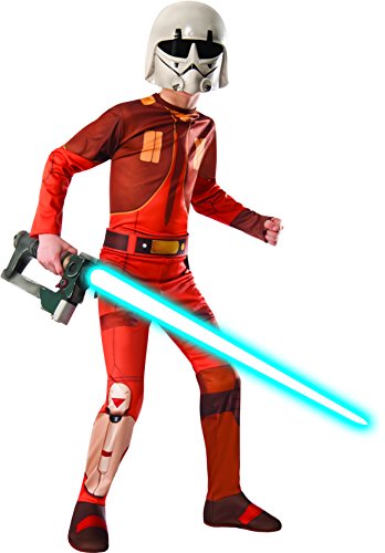 -. Binding : Toy -. Brand : Rubie's -. ClothingSize : One Size -. Color : multi-colored -. Department : unisex-child -. Feature : Inspired by the Disney cartoon Star Wars Rebels and licensed by Lucas films Animation Studios / Best fit for children 52 to 60-inches tall / Search Star Wars and Rubies for make-up, wigs, weapons - all the accessories you need to get the look you want / Rubies' Costume Co, a world leader in costumes and accessories for the entire family since 1950 -. Label : Rubies - Domestic -. Manufacturer : Rubies - Domestic -. Model : 884874_L-Parent -. MPN : R884874 -. PackageQuantity : 1 -. PartNumber : R884874 -. ProductGroup : Toy -. ProductTypeName : CHILDRENS_COSTUME -. Publisher : Rubies - Domestic -. ReleaseDate : 2014-08-01 -. Size : One Size -. Studio : Rubies - Domestic -. Title : Rubies Star Wars Rebels Ezra Costume -. Warranty : No Warranty