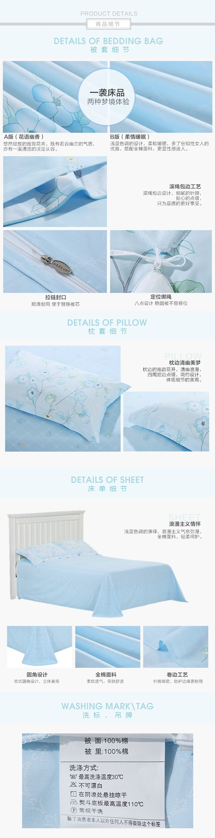 Product specifications 1.5m bed cover: 200 * 230cm bed sheets: 240 * 245cm pillowcases: 48 * 74cm 1.8m bed quilt cover: 220 * 240cm bed sheets: 270 * 245cm pillowcases: 48 * 74cm