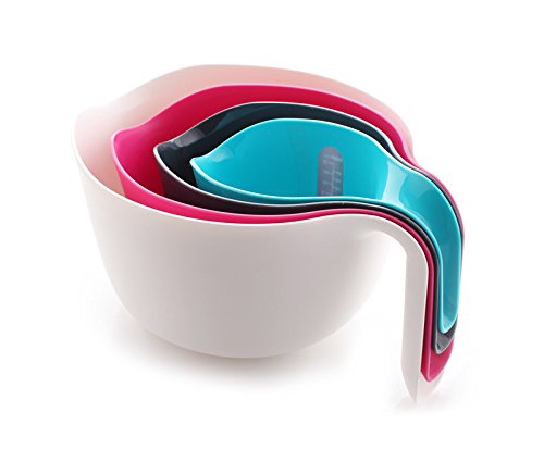 Compact Colorful mixing bowls, Rainbow Non Slip Bowl Cup Set - Nesting set of 4, Bowl with Spout