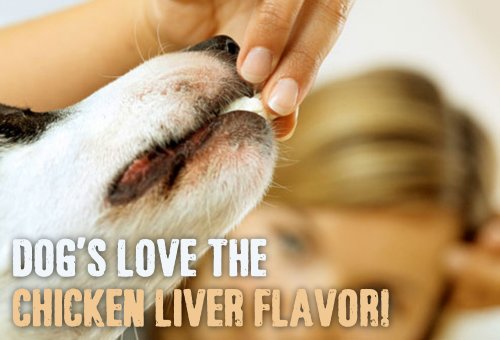 ➤ 120 CHICKEN LIVER FLAVOR TABLETS that taste more like treats than supplements. Your dog will devour every chewable tablet with excitement.