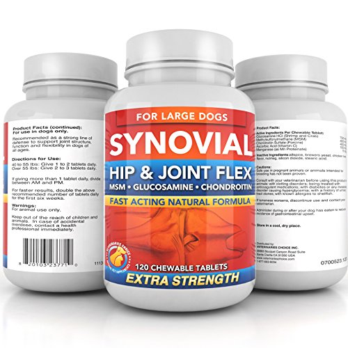 Your dog's hip & joint pain can be relieved using our extra strength formula. Synovial Hip & Joint Flex contains some of the purest and most potent Glucosamine, Chondroitin and MSM found on the market today.