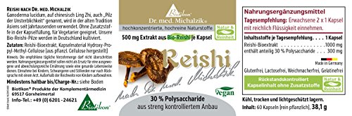 -. Feature : Reishi, auch Ling Zhi genannt mit 500 mg Extrakt aus Bio-Reishi je Kapsel. / Unsere Bio-Reishi-Pilze werden in Deutschland kultiviert. / Unser Produkt ist OHNE Magnesiumstearat. / Hergestellt in Deutschland nach Dr. med. Michalzik® / Produkt Garantie: Hochwertige Qualität für Ihre Gesundheit.