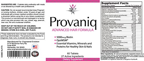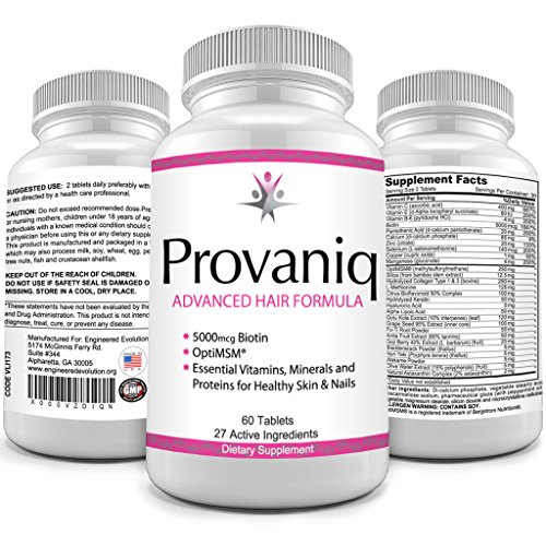 -. Title : Hair Growth Vitamin Supplement Provaniq: A Highly Effective Hair, Skin & Nail Formulation Containing "27 Bio-Available Ingredients" 5,000mcg Biotin, OptiMSM®, Keratin, Collagen And A Key DHT Blocker!