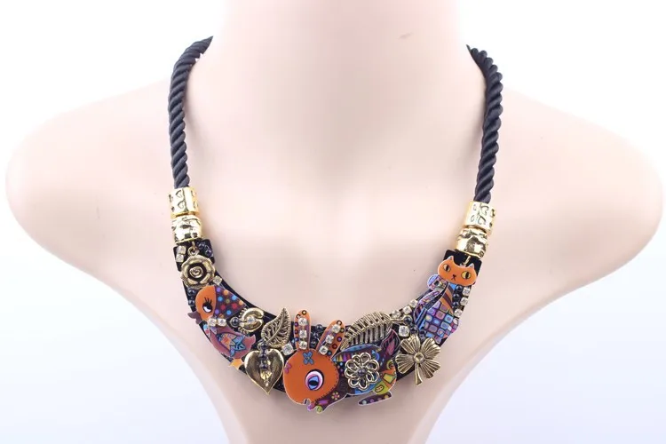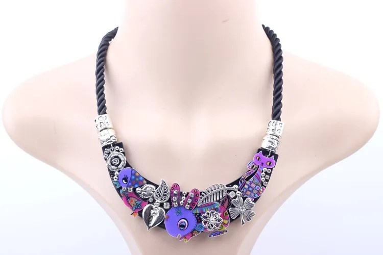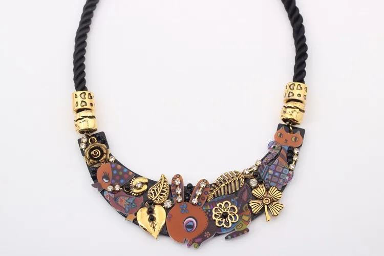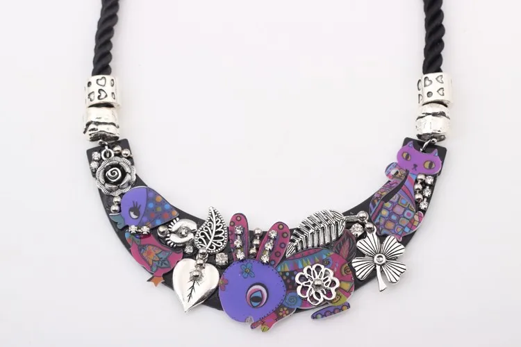 Bonsny Rabbit Birds Cat Collar Necklace Acrylic Pattern Statement Choker Necklace Fashion Brand Jewelry For Women Girls