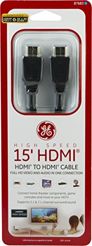 GE 15 ft. High Speed HDMI Cable, Black, HDMI to HDMI, 1080P Full HD, 4K Ultra HD, 87683