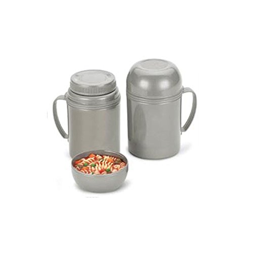 MicroMagic Food Bottle Who else but Aladdin could offer MagicHeat? Pop this food bottle into a microwave, heat according to directions, and the food inside will remain hot for up to six hours. Bottle is made of high impact plastic and is virtually unbreakable. Bottle is also unique in that there is NO glass to break. Just pour food contents into serving-bowl lid and you are ready to eat. Available in Titanium as shown.