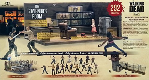 -. Feature : Bundle includes 292 piece The Governor's Room building set & 2 packs of Series 1 Blind Bags (1 Human, 1 Walker). / The Governor's Room set includes The Governor and Penny figures. / Buildable Governor's Room set includes: hardwood floors, two walls, light up base to illuminate nine fish tanks encasing walker heads, cage, leather chair, end table with lamp, two woven baskets and a bucket of body parts. / Fish tanks contain LED Lights. (Four alkaline button cell 1.5V batteries included). / Each Series 1 Blind Bag includes 1 mini figure with weapons & accessories. Blind Bag Series 1 has 8 different characters to collect which include a variety of human and walker figures.