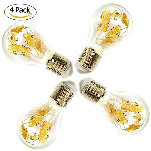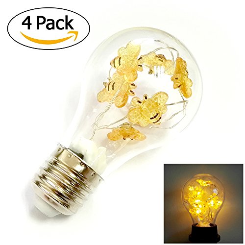 Edison Decorative Bulb, Impress Life String Lights Inside, Set 4 G60 E26 Decorting Bulbs for Indoor, Outdoor, Garden, Patio, Lawn, Halloween, Wedding, Birthday, Bar Parties, Balcony Decorations (Bee)