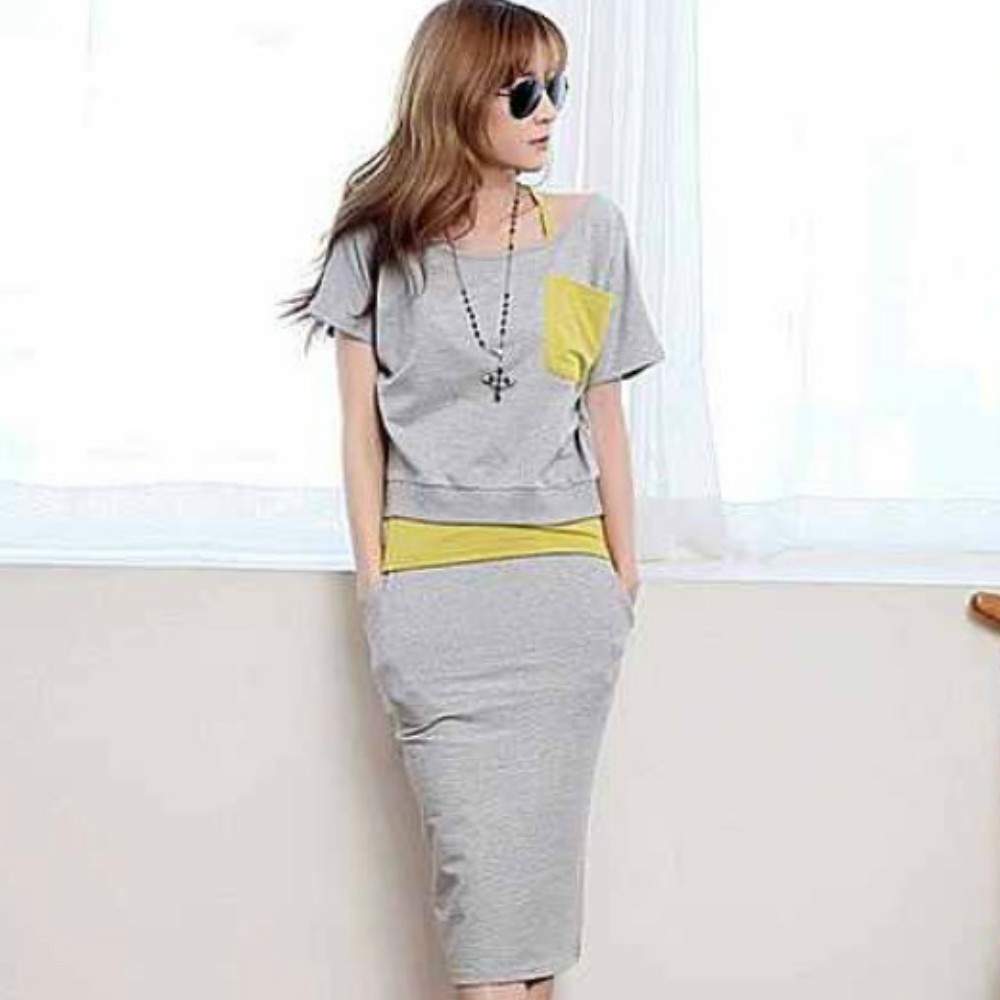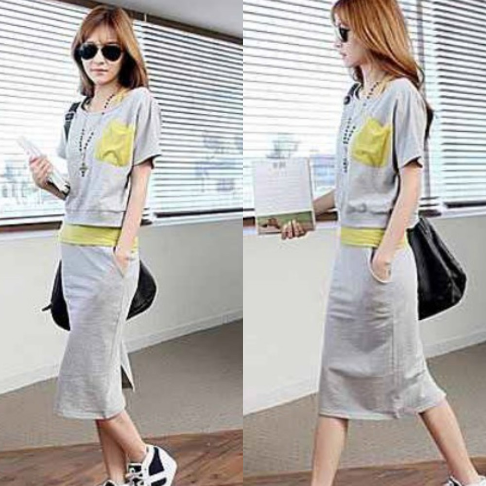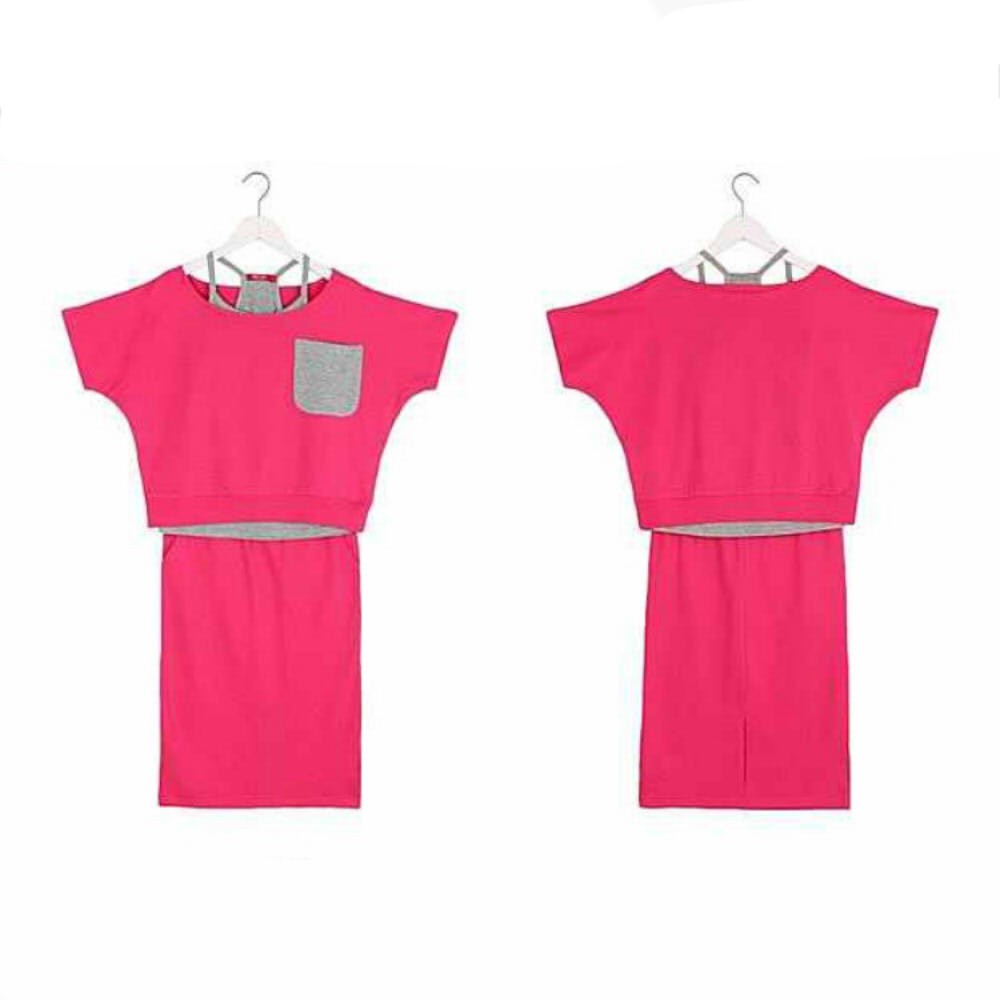 楽カワ☆半袖 Tシャツ キャミソール+膝丈スカート セットアップ