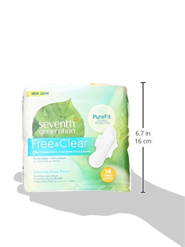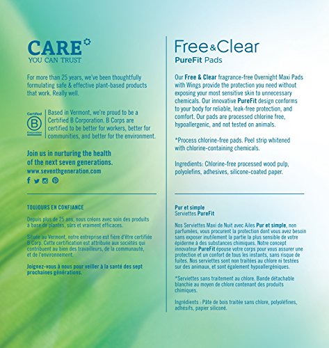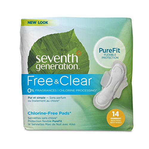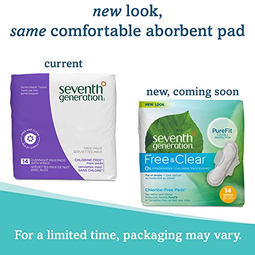 Seventh Generation Maxi Pads, Overnight with wings, Free & Clear Chlorine Free Maxi Pads, 14ct