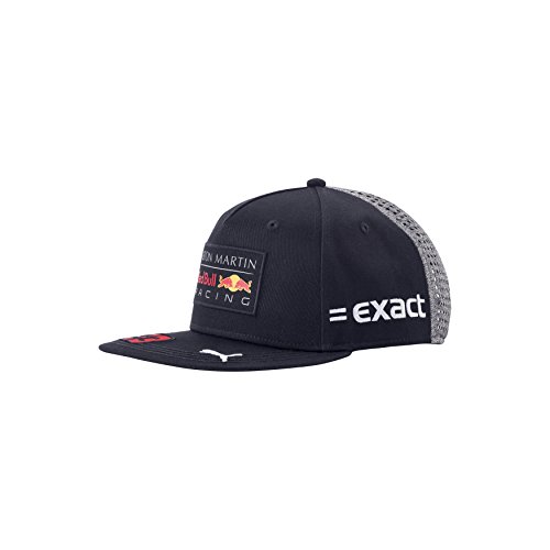 -. Binding : Apparel -. Brand : Red Bull -. Color : Blue -. Department : boys -. EAN : 4059506066788 -. Feature : Embroidered team logos / Raised number '33' on brim / Perforated grey panels / Hybrid material design / Adjustable snapback -. MPN : 43252-2457 -. PackageQuantity : 1 -. PartNumber : 43252-2457 -. ProductGroup : Apparel -. ProductTypeName : SPORTING_GOODS -. Size : Adjustable -. Title : Red Bull Formula 1 Racing 2018 Aston Martin Kids Max Verstappen Flatbrim Hat