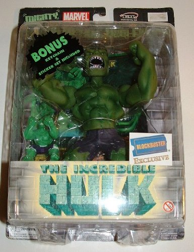 - Feature : Approx 7.5" tall ! / Head and arms bobble ! Spring action head & arms ! Rotating Waist ! / Bonus Hulk figural keychain and sticker set included ! / Very rare discontinued collectable store exclusive !