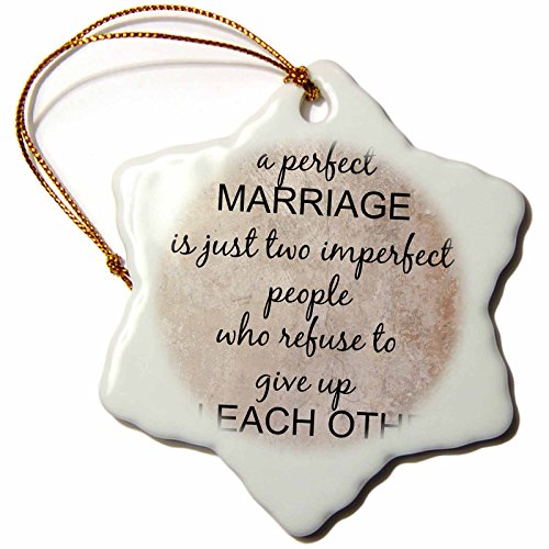3dRose orn_180092_1 A Perfect Marriage, Black Lettering on Picture of Marble Print Background-Snowflake Ornament, Porcelain, 3-Inch