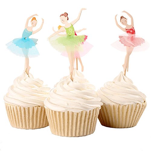 Joinor Set of 24 Pieces Cute Ballet Dancer Girls Fairy Peri Dessert Muffin Cupcake Toppers for Picnic Wedding Baby Shower Birthday Party Server