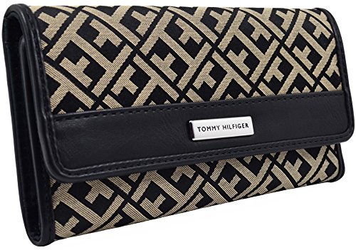 (Tommy Hilfiger)/Accessories/Wallets, Money Key Organizers/DIRECT FROM USA/Tommy Hilfiger Logo Continental Women's Black/Tan Checkbook Wallet