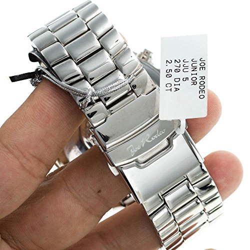 -. Binding : Watch -. Brand : Joe Rodeo -. Department : Mens -. EAN : 0801883200989 -. Feature : 2.50 ct of Genuine High Quality Diamonds / Solid Stainless Steel casing / Fully functional SWISS chronograph movement. / Water Resistant upto 330 ft / Comes with two extra bands -. Label : Rodeo of New york -. Manufacturer : Rodeo of New york -. MPN : JJU5 -. PackageQuantity : 1 -. PartNumber : JJU5 -. ProductGroup : Watch -. ProductTypeName : WATCH -. Publisher : Rodeo of New york -. Studio : Rodeo of New york -. Title : Joe Rodeo JUNIOR JJU5 Diamond Watch -. UPC : 801883200989