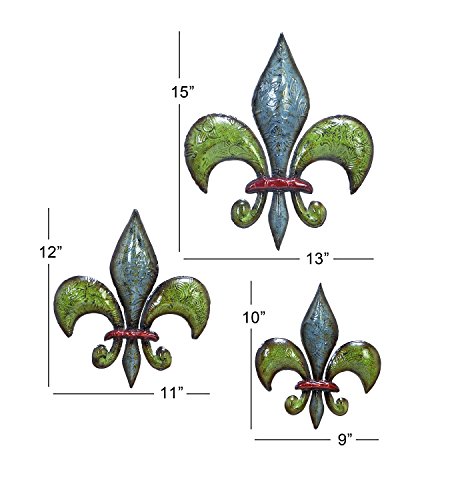 Deco 79 Metal Fleur De Lis, 15 by 12 by 10-Inch, Set of 3