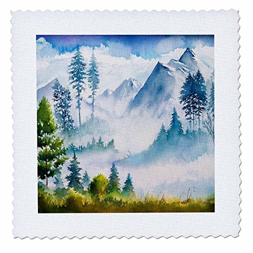 3dRose Watercolor Winter Mountain Scene Quilt Square, 12 x 12"