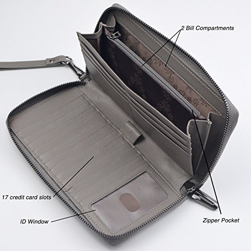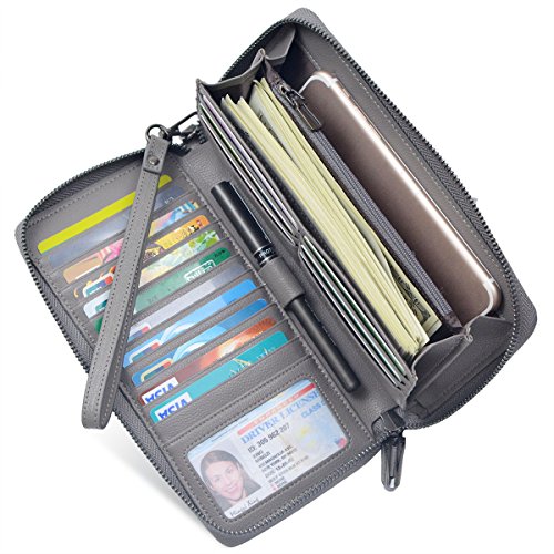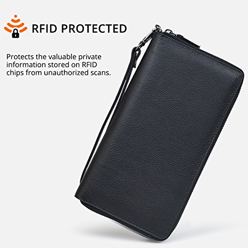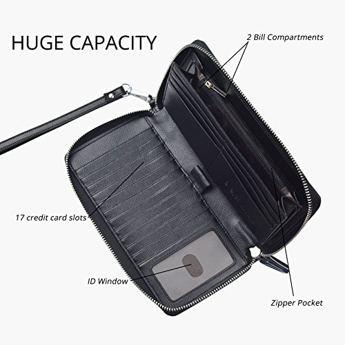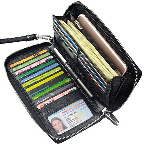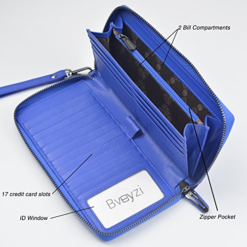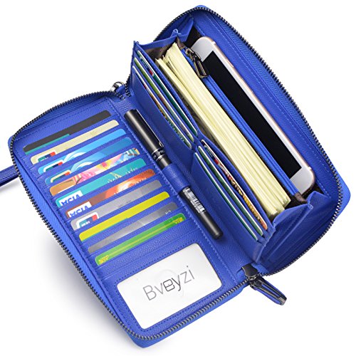 Big RFID Blocking Wallet,Keep You More Organized and Safe it has 17 cards slots and has rfid function. Protect your credit card security. it can fit iPhone 7 plus or other smartphone with ease.it is suitable for cash, coins, passport, pen, checkbook... Zip-around closure,easy access. RFID Blocking - Our RFID wallets are equipped with advanced unique proprietary blocking material, which blocks RFID signals and protects the valuable private information stored on RFID chips from unauthorized scans. Best Gift: Gift packing,Great buy for yourself or as a gift for her on Birthday, Anniversary, Mother's Day, Thanksgiving, Christmas, and all other holidays! About US Bveyzi focus on the design and development of small leather goods. Make your carry with greater simplicity and ease. Bveyzi wallet is made of 100% genuine leather, soft and comfortable. The enjoyment of high-end and need not spend too much money. Notes: - Hardware to be waterproof