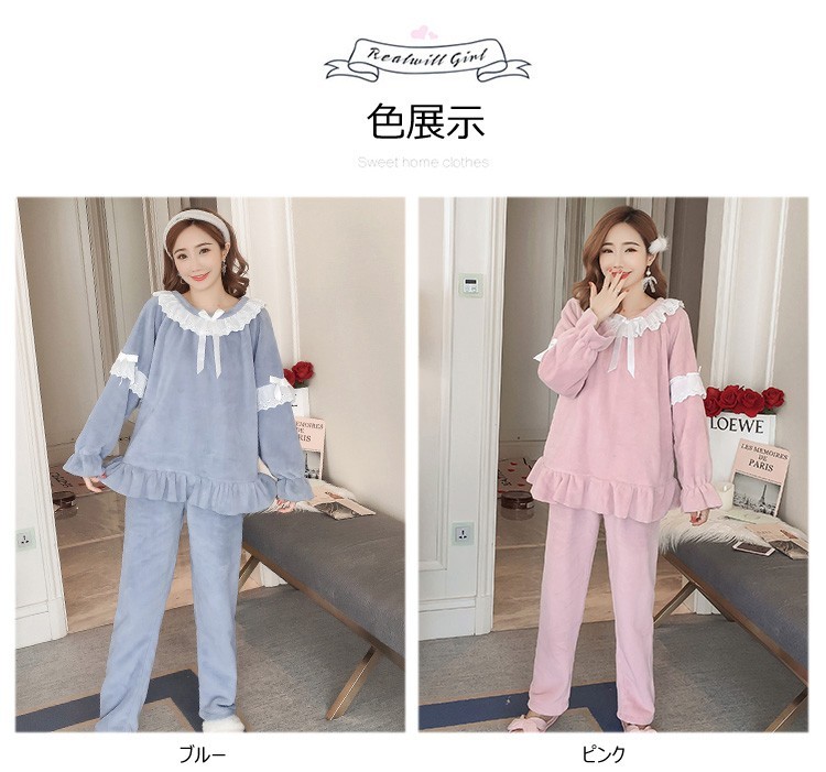 連携キーワード:パジャマ もこもこ ルームウェア レディース 秋冬 長袖 パジャマ厚手 フランネル ルームウェア 上下セット レース パジャマ 部屋着 寝巻き 女性 可愛い 2色