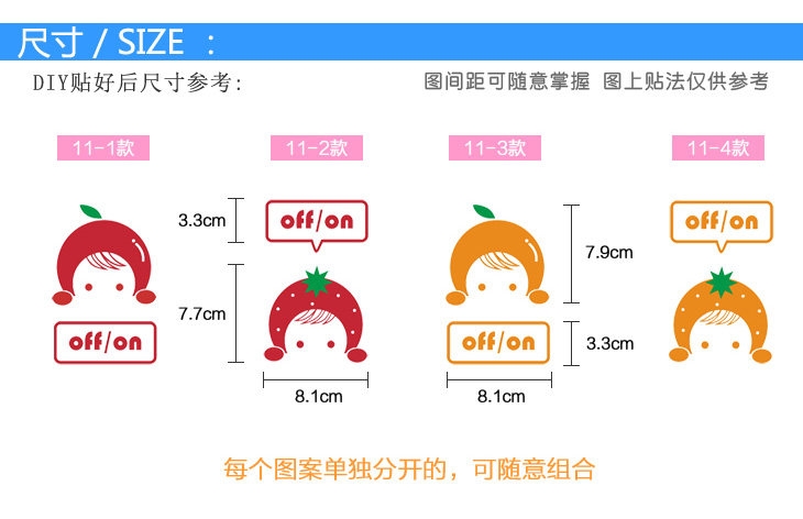沃雅韩国风格墙贴DIY 彩色开关贴【可爱女孩系列】多款选