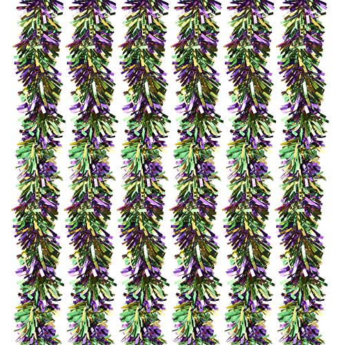 6-Pack Christmas Tinsel Garland - Sparkling Hanging Decoration - Perfect for Xmas and other Festivities - 5 x 118 Inches