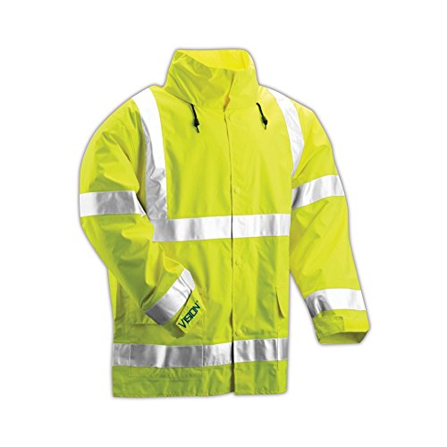 [Product Information]- ANSI/ISEA 107 Class 3 compliant jacket for high visibility and breathability; Fluorescent yellow-green background material; Breathable to ASTM E96
