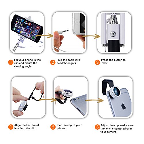 EASY TO USE - The Selfie stick has an in-built remote shutter ,just plug in your mobile and click as many selfies as you like. It comes with a mobile holder that can be conveniently rotated with the help of Unique ball-head and locked to any angle up to 270 degrees and can hold phones with width ranging from 5.5-8.5cm. The selfie stick is compatible with both android and iOs phones.
