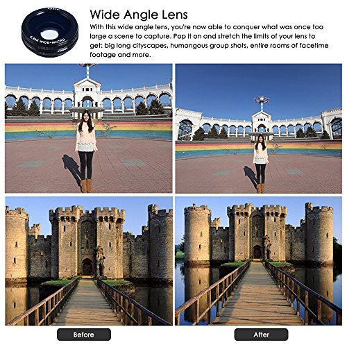 3 IN 1 PHONE LENS-Wide angle lens is suitable to take picture of large ranges,such as group of people, buildings and landscape. With the macro lens, you can take picture of a tiny object clearly. Fisheye lens is actually ultra-wide angle lenses.With it, your phone lens will capture rounded images.