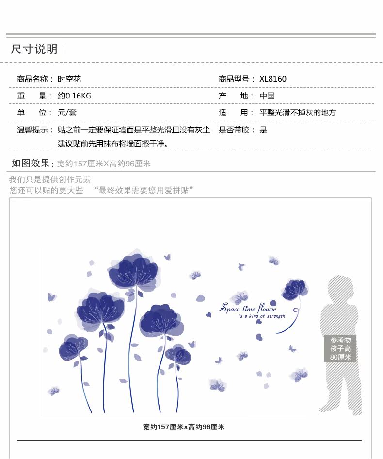 可移除梦幻罗兰自粘墙纸贴画客厅卧室电视背景墙壁装饰画墙贴纸