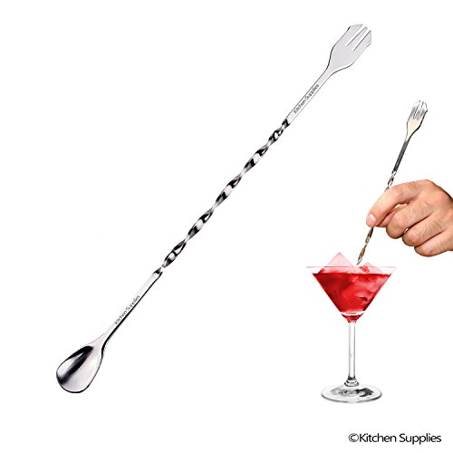 - "Stirred, not shaken". Classic cocktails that are comprised entirely of spirits (liquor on liquor) need to be stirred, not shaken. The 10" Mixing Spoon is the perfect tool for the job. On the opposite side of the spoon you will find a small fork that you can use for for grabbing olives or other garnishes.