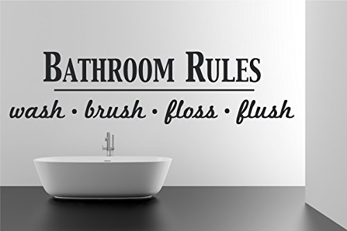 Bathroom Rules Wash Brush Floss Flush Quote Saying Wall Sticker Removable Home Decor Vinyl Decal Art (Black, 9x36 inches)