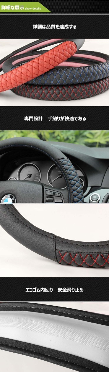 人気の高品質ハンドルカバーグリップしやすい【ディンプル加工】スポーツスタイリッシュ【適合】ハンドル外側までの直径が36cm~38cm【素材】合成革※予め直径(外側から外側までの長さ)をお調べ下さいステアリング操作ではズレたりしないようフィット感を重視しピッタリと安全性を考慮して作られていますシートカバーとコーディネートも楽しめます※生産上の都合により、生地の質感や色が多少写真のものとは変更となる場合がございます。予めご了承ください。