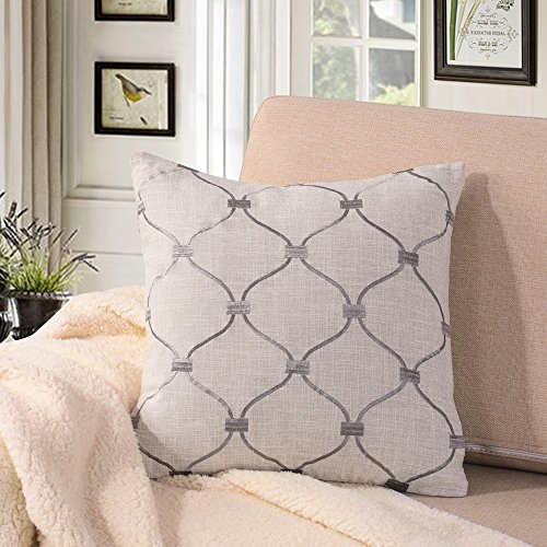 Exquisite trellis embroidery. Soft and elegant colors make it an appealing addition to any room. 100percent polyester shell, crafted of durable, easy-care material. Embroidery with woven of acrylic/rayon. Artful pattern is highly detailed. Fill included: 100percent polyester. Premium quality fill. Weight count higher than average. Cover is removable, on-seam zipper. Knife-edge tailoring. Reverses to solid neutral.Feature