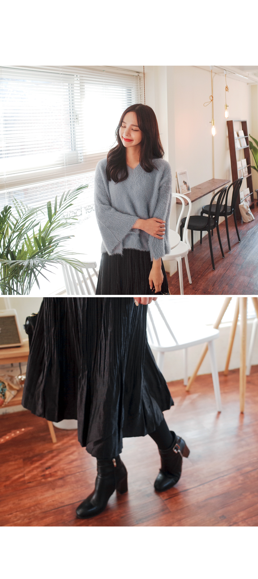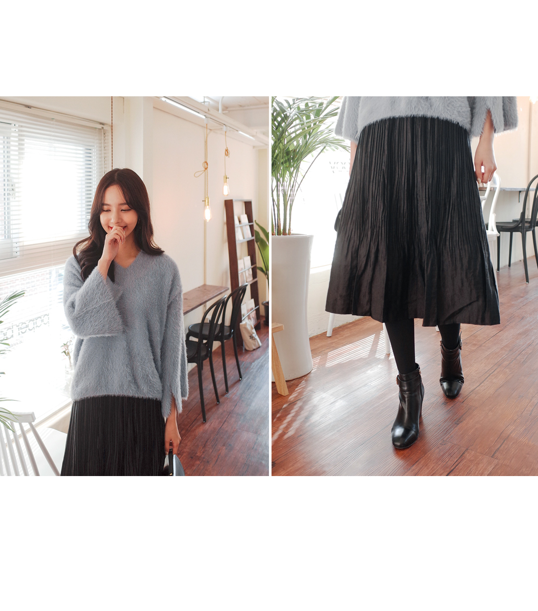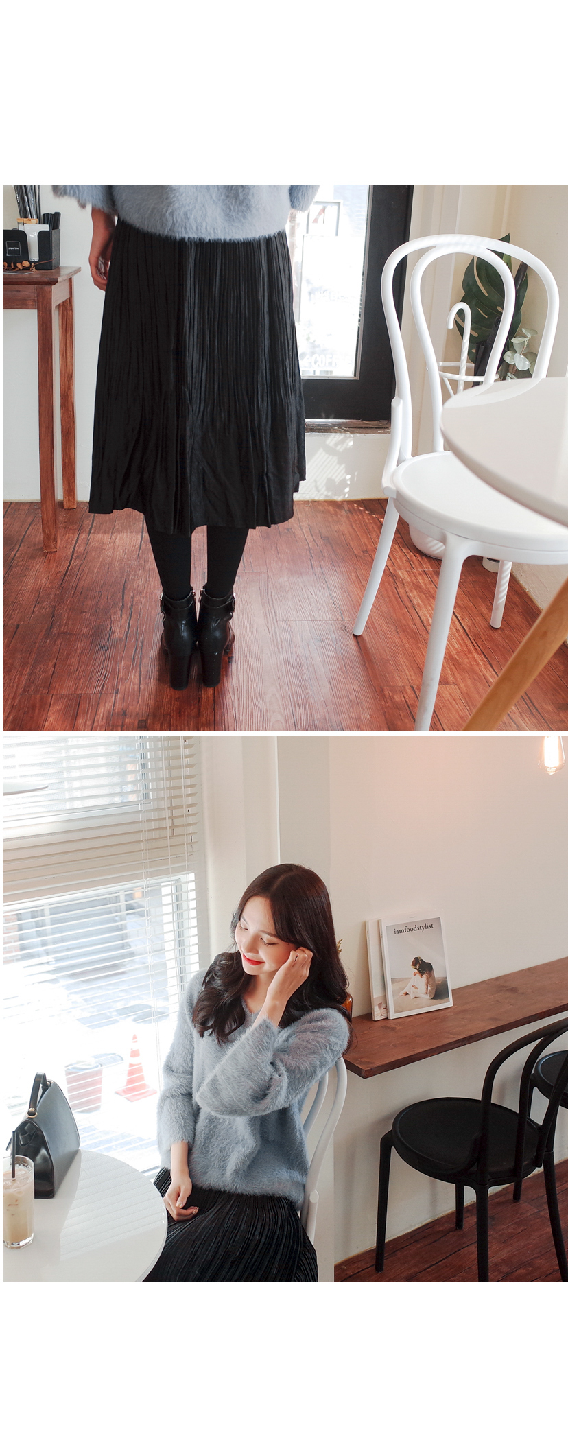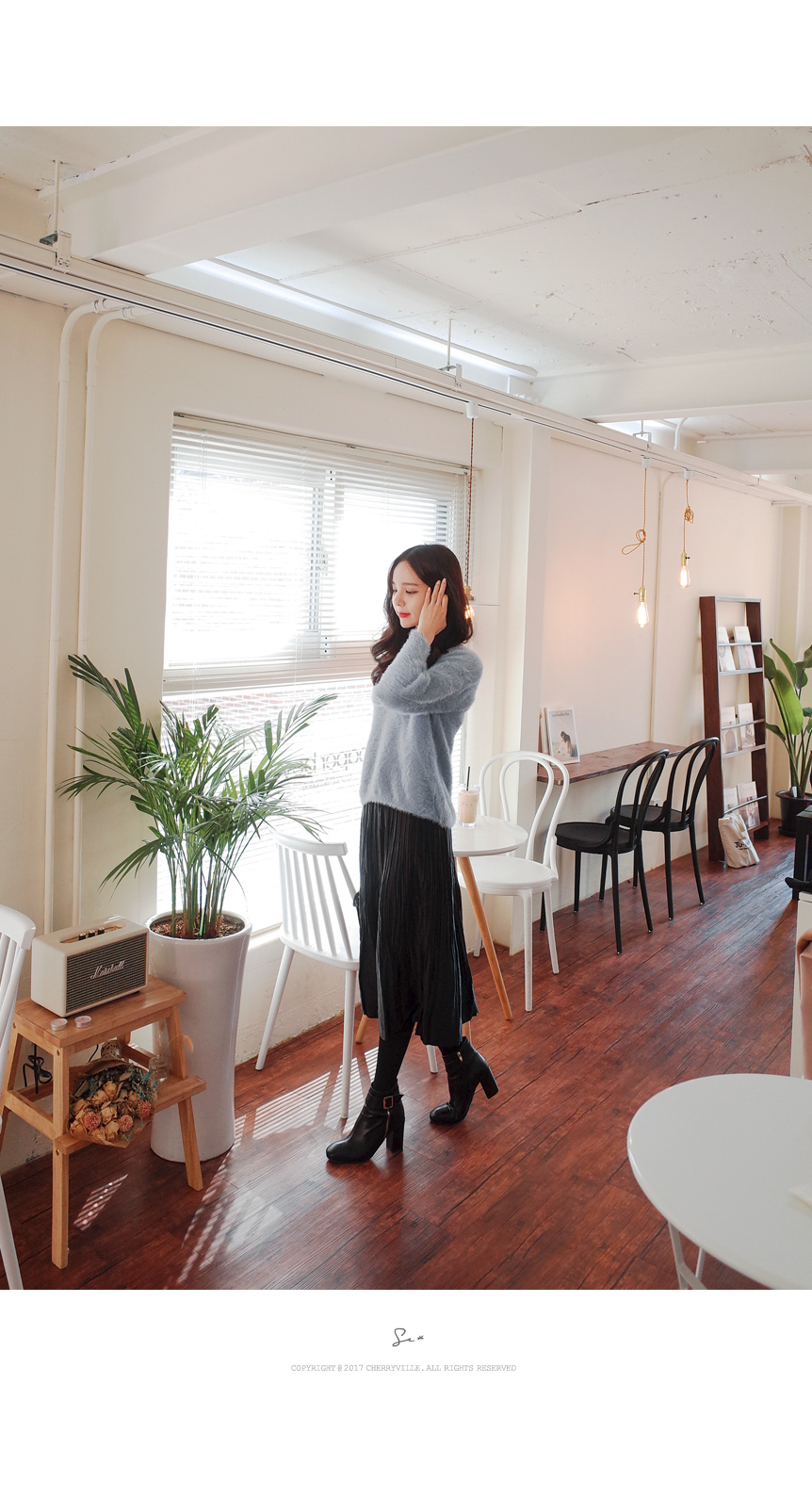 잔잔한 주름으로 여리하게 매치하기좋은 스커트입니다