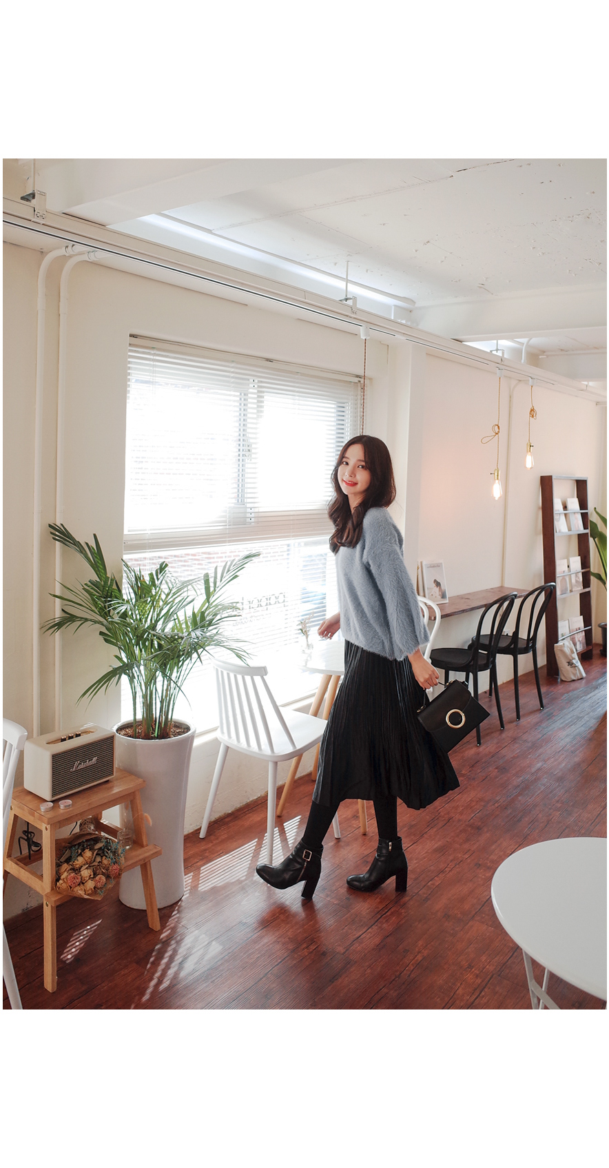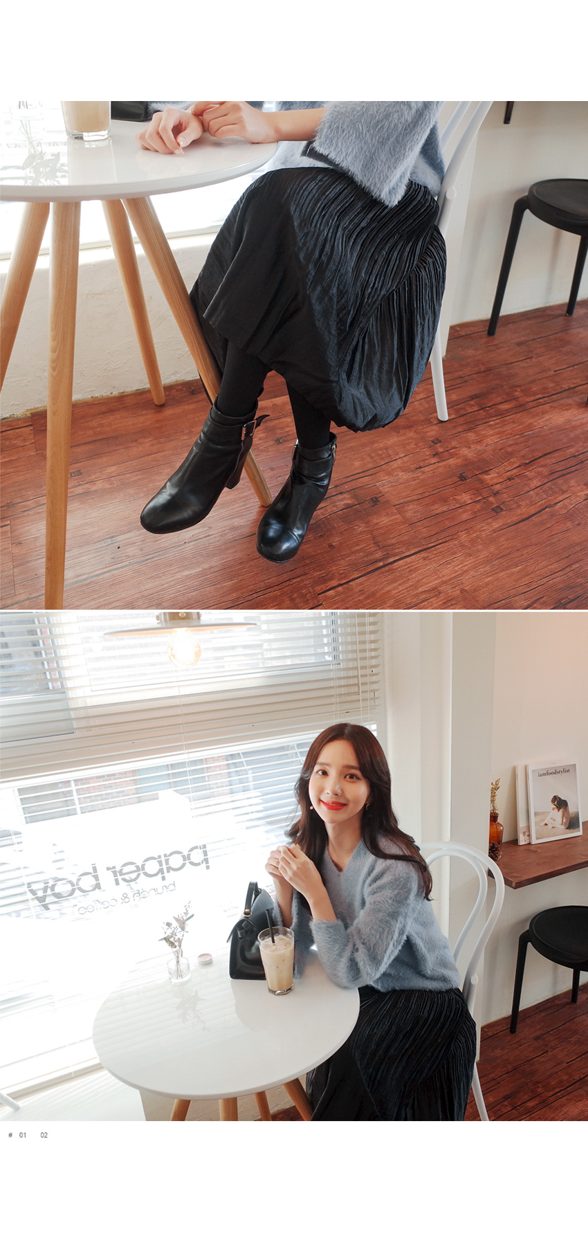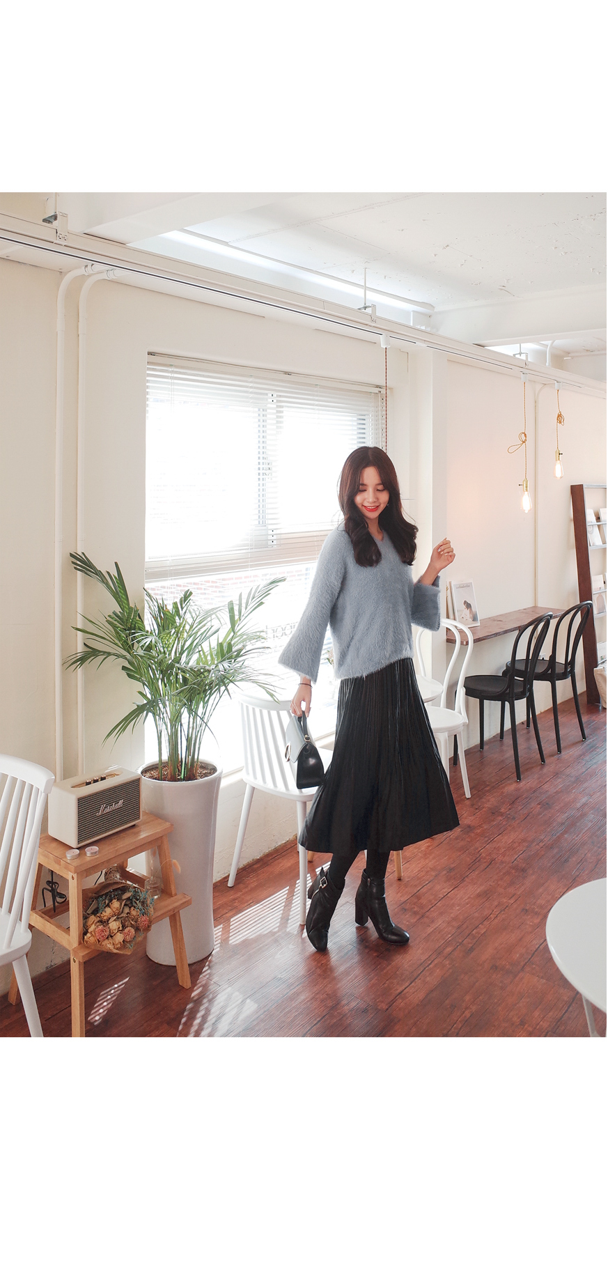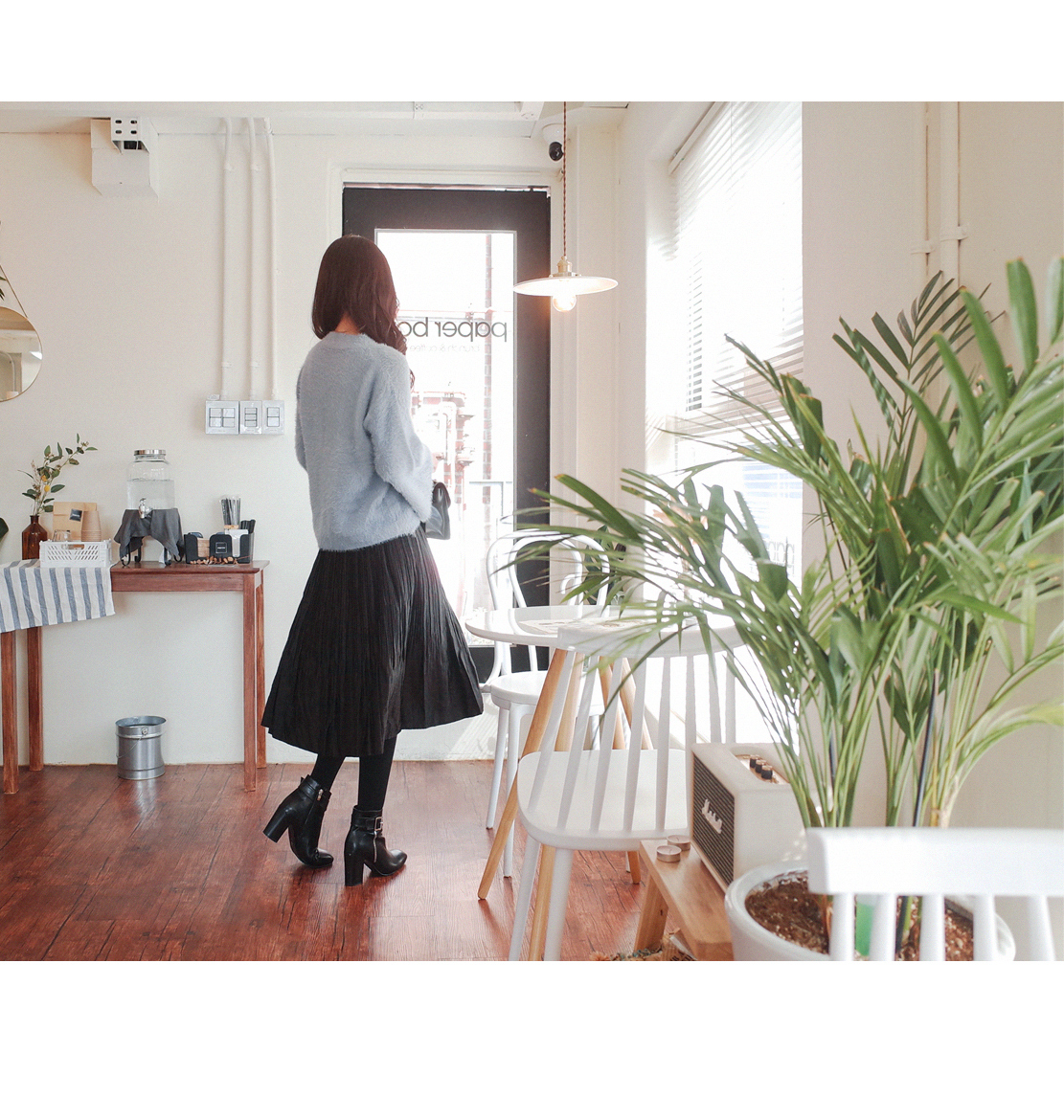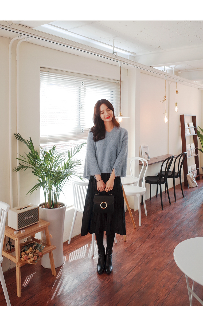 잔잔한 주름으로 여리하게 매치하기좋은 스커트입니다