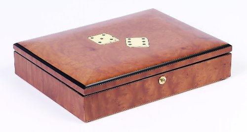 Studio : Bello Games New York, Inc. Publisher : Bello Games New York, Inc. Binding : Misc. Product Description Made in Italy This beautiful Italian inlaid poker/card set will delight the collector or anyone who loves fine things. Glossy finish with solid brass piano hinges. Complete with two decks of cards, 100 Monte Carlo type chips, 5 poker dice and 5 regular dice. Size: 9 7/8" x 7 1/2" x 2". 0