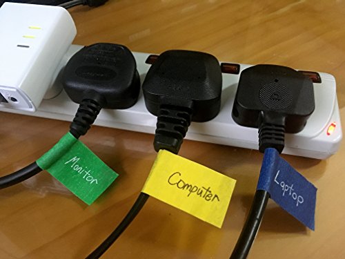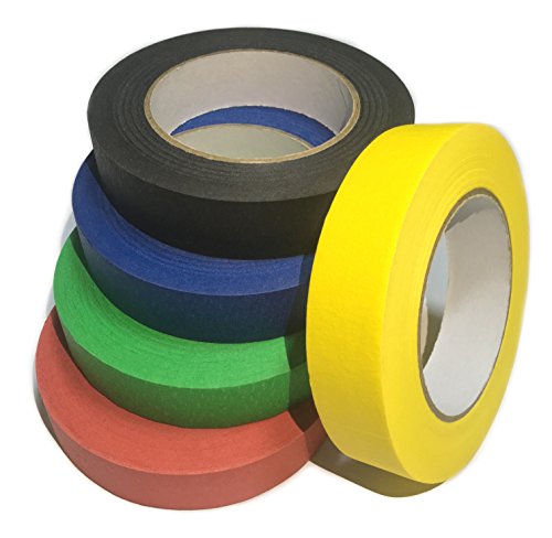 Ventincre coloured masking / washi tape set, 1" x 60 yards, 5 roll pack (black, blue, green, red, yellow) (Multicolor)