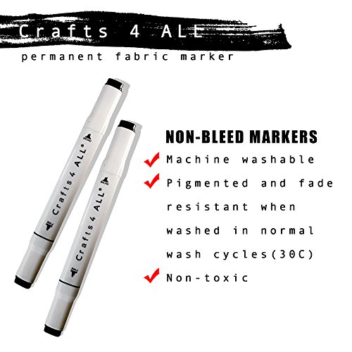 Crafts 4 All Permanent fabric marker Laundry Marker Non bleed Dual tip - 2 pack , BLACK